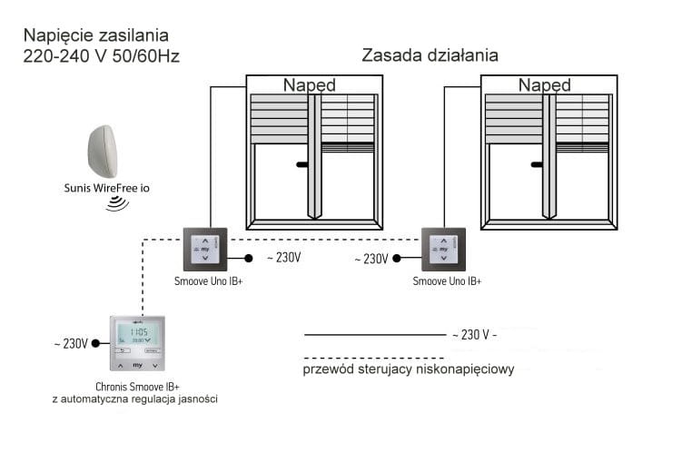 Chronis Smoove IB udostępnienia wszystkie funkcje urządzenia Chronis Smoove Uno S Magistrala IB+ umożliwia centralne sterowanie wieloma urządzeniami Smoove Uno IB+, które mogą zostać przypisane do maksymalnie 3 grup (stref) o różnych czasach przyłączenia.